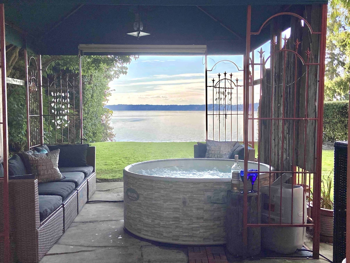 Water View Getaway Suite, WA is nestled in a beautiful & historic water view community, with breathtaking views of the Puget Sounds, local islands, mountains and the surrounding natural beauty. Enjoy a private entrance to the Suite, private king bedroom, private sofa and coffee bar, an outdoor driftwood cabana, fire pit and Salu Spa hot tub. Reflect and renew, explore PNW or work remotely at the Water and Sound View Getaway. Strictly no animals, smoking or vaping allowed in or on property.
