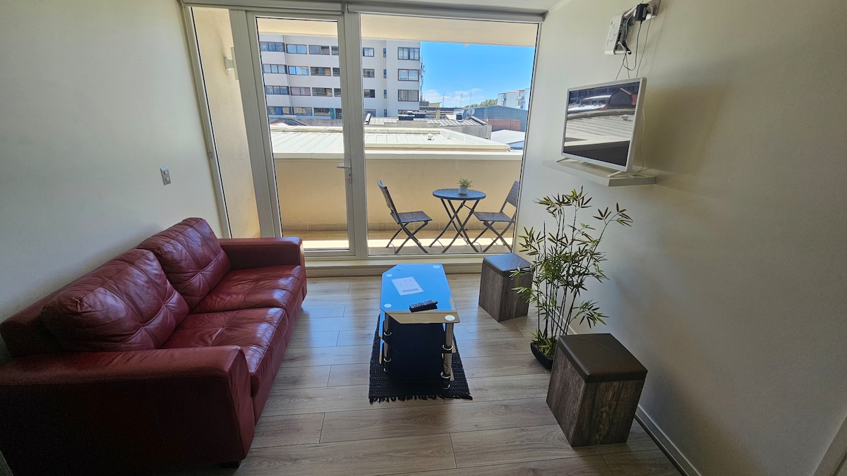 ¡Tu base ideal en Valdivia! Disfruta de este moderno departamento en el piso 6, ubicado a minutos caminando del centro, parques y la mejor gastronomía. El espacio es fresco e iluminado, equipado con Wifi de alta velocidad, Smart TV y seguridad 24/7. Contamos con estacionamiento privado (sujeto a reserva y pago adicional) y opciones gratuitas en la calle según disponibilidad. Además, el edificio ofrece servicio de lavandería de pago. ¡Vive Valdivia con todo cerca y reserva hoy!