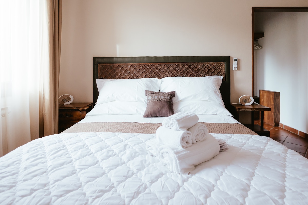 ALOJAMIENTO en habitaciones elegantemente amuebladas, mantenidas y espaciosas con baño privado, algunas con cocina exclusiva y equipadas. Internet en la habitación. El propietario siempre está disponible para dar información turística y práctica sobre el territorio.