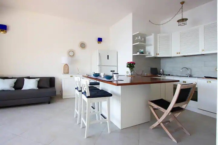 Delightful penthouse in the historic center of Lerici, with a terrace overlooking the sea, recently renovated, on 2 levels: -Panoramic terrace with sea view, ideal for aperitifs. -Lower level: white resin floor, sofa bed, OLED Smart TV, modern kitchen with extendable dining table. -Upper level: parquet, double bed, large wardrobe -Bathroom with shower and washing machine -Kitchen equipped with induction hob, fridge, freezer, dishwasher and microwave