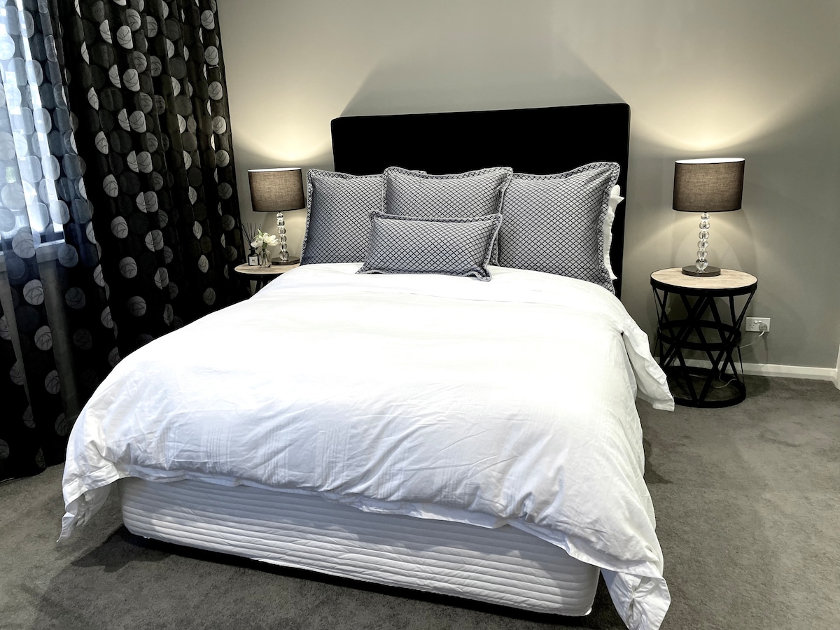 This is the private, self-contained guest suite of a large family home. Our property has a shared secure entrance from the street and the guest suite has its own entrance door, deck, travertine stone shower, separate toilet, kitchenette with mini-bar fridge and a small built-in robe. Queen-size bed, wall-mounted smart TV, reverse cycle air-con and a small BBQ on the deck. Laundry facilities available if you need. Minimum 2-night stay and 12% discount for 7 nights or more. Free street parking!