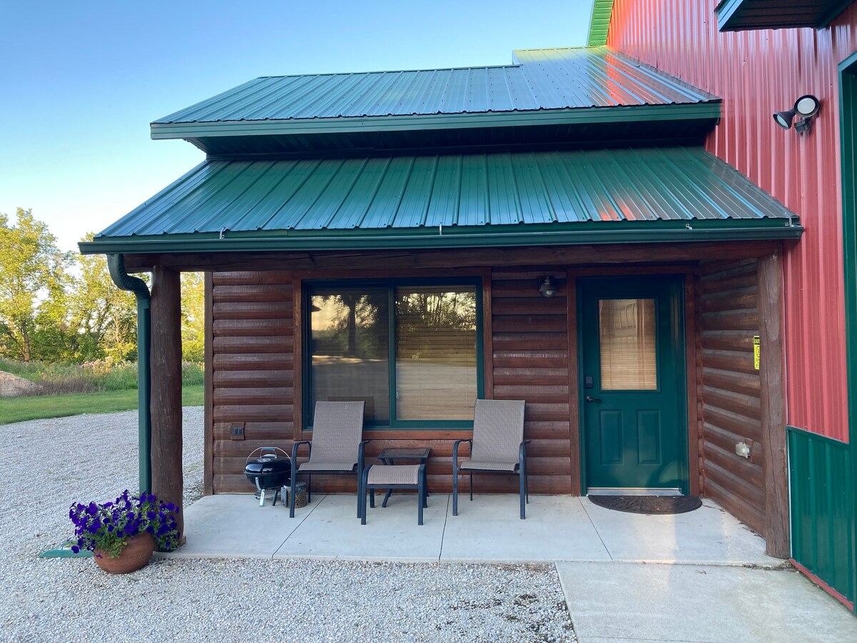 Una hermosa caminata privada en un lugar único. Cabaña seca y tranquila en un lugar perfectamente aislado para escapar de todo. Sin televisión, sin teléfono, sin aire acondicionado ni internet. Cuando reserves este alojamiento, realmente querrás desconectar... Cabaña loft de 1 dormitorio enclavada en 20 acres de árboles, valles y campos de maíz. ¡Esto es la vida en bruto! En los profundos bosques naturales dentro de un barranco entre campos, encontrarás este lugar un maravilloso santuario para la vida silvestre. Sigue los pocos senderos de ciervos dispersos en la propiedad y explora este lugar natural.