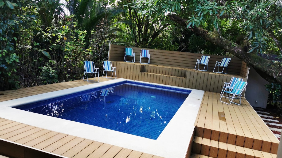 Unique Balinese inspired treehouse overlooking a seasonal river, butterfly garden and tropical fruit orchard. Built with locally sourced lumber that was mostly milled on the property and complemented with keepsakes and carved wooden accents collected while exploring Indonesia and Thailand. This is a birder’s paradise with daily visits of scarlet macaws, parrots and toucans. Located a short drive from world class surfing , oceanfront restaurants and nightlife in playa Hermosa and playa Jaco.