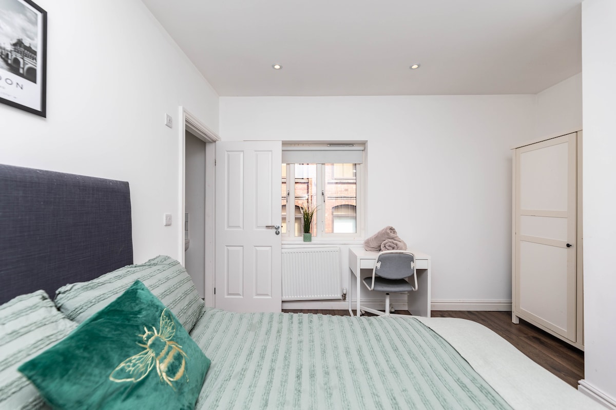Tranquilo y cómodo: un espacio amplio y cuidadosamente diseñado para huéspedes de negocios y de placer. Acogedor y bien equipado: todo lo que necesitas para una experiencia hogareña lejos de casa. Ubicación perfecta: a pocos pasos de tiendas, restaurantes y las principales atracciones de la ciudad. Perfecto para estancias largas, ideal para trabajo remoto, estudiantes, trabajadores del NHS, contratistas, viajes de negocios listos, espacio de trabajo dedicado y wifi estable. ESTACIONAMIENTO: Q-Park The Light, a solo 2 minutos a pie de la propiedad o NCP The Core Car Park.