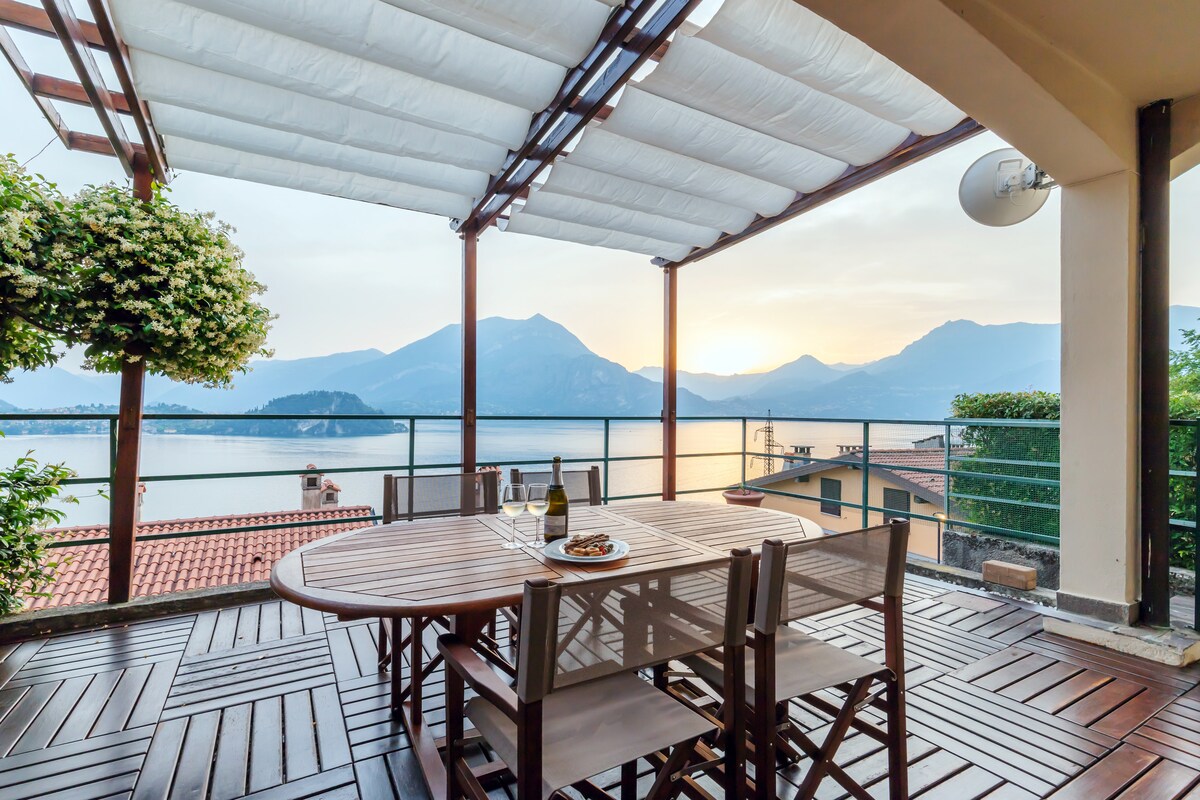 Ampio bilocale ad uso esclusivo vacanze, ristrutturato e full attrezzato. E' affacciato sul lago, blu attorno, ideale per rilassarsi fuori dal trambusto del centro. Grande terrazzo incantevole per cene romantiche di fronte a Bellagio e a meravigliosi tramonti. Il bel "Greenway dei Patriarchi" inizia da sotto casa e collega al centro di Varenna in soli 30min/2,5 km di passeggiata facile e panoramica Senza auto e' consigliato solo se ami e sei abituato a camminare Accesso al lago a 250 metri