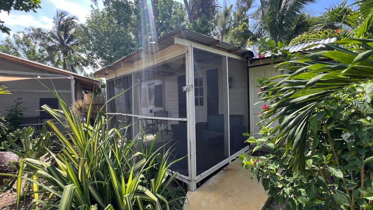 Las cabañas están hechas en un estilo tradicional y rústico. Están equipadas con una cama tamaño queen con la parte superior acolchada y un ventilador. Tenemos una ubicación céntrica y a solo 150 metros de la playa. Literalmente a tiro de piedra. Puedes tumbarte en la hamaca y relajarte bajo el árbol que lleva la flor nacional, el Lignum Vitae, y escuchar a los muchos pájaros cantando arriba. Estamos idealmente situados lejos de las miradas indiscretas y a poca distancia a pie de los restaurantes y tiendas.