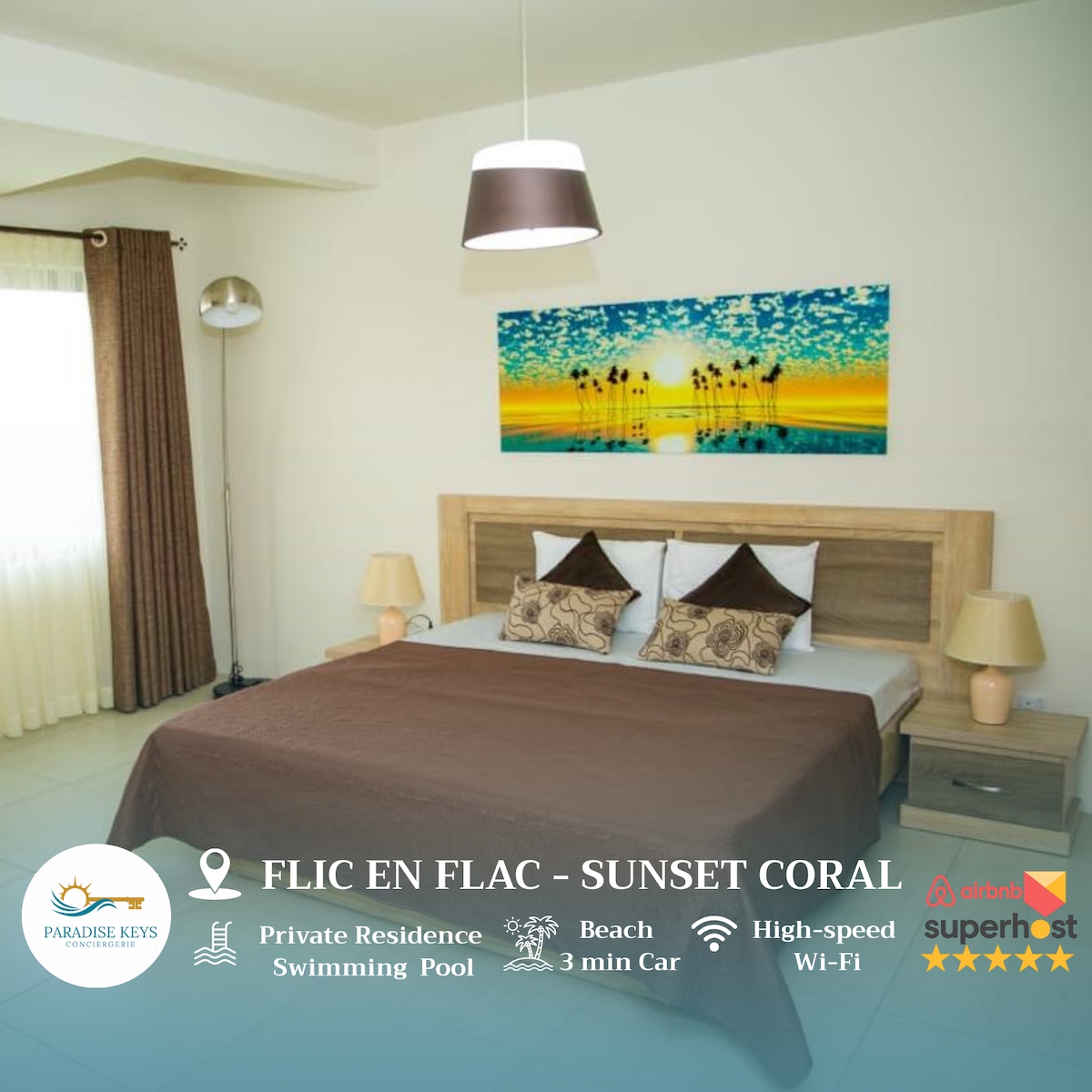 Brand-new 3-bedroom apartment on third floor just a 5-minute walk from Flic en Flac Beach. Bright, modern, and fully equipped with everything you need for a comfortable stay. Enjoy a common rooftop pool with stunning ocean views, high-speed WiFi, Smart TV, air-conditioned rooms, and secure on-site parking. Walking distance to shops, restaurants, and all local amenities. The building also has an equipped gym. Perfect for couples, families, or friends looking to relax and explore.
