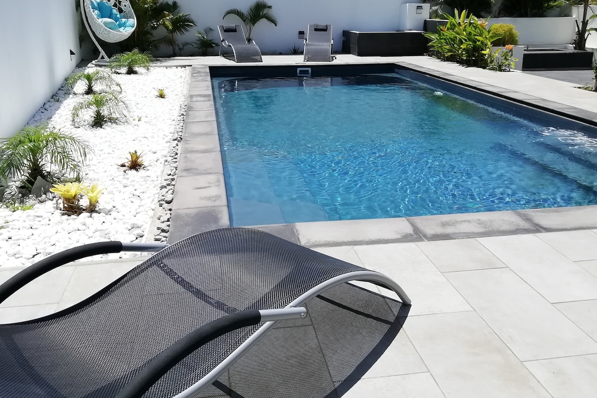 Relájate en este alojamiento tranquilo y elegante. El pueblo de Cap Malheureux es único y apreciado por su autenticidad, los habitantes son sonrientes y son muy sociables. Cerca de tiendas y muchas playas. El departamento está ubicado en el primer piso de una residencia privada, con gran jardín y piscina salada/ jacuzzi, mesa de tenis y barbacoa. En medio del jardín tropical hay un gimnasio al aire libre para mayores de 18años. Estacionamiento seguro.