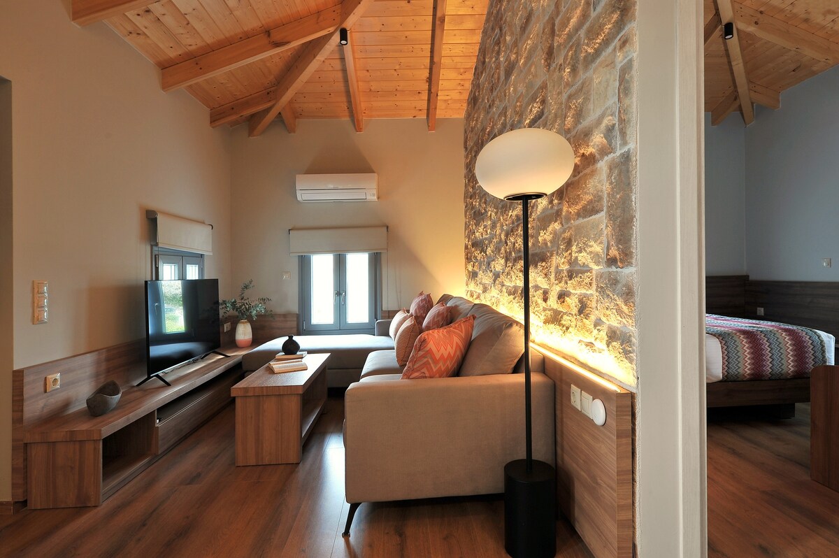 Esta impresionante villa de piedra ofrece una piscina privada para la máxima relajación y está convenientemente ubicada cerca de playas locales, restaurantes y servicios como supermercados, bares y tabernas. ¡La playa de Zaga y Agia Triada se encuentran a 6 minutos de distancia! Los huéspedes pueden disfrutar de wifi y aparcamiento gratuitos. Es una opción excepcional para unas vacaciones inolvidables y relajantes.
