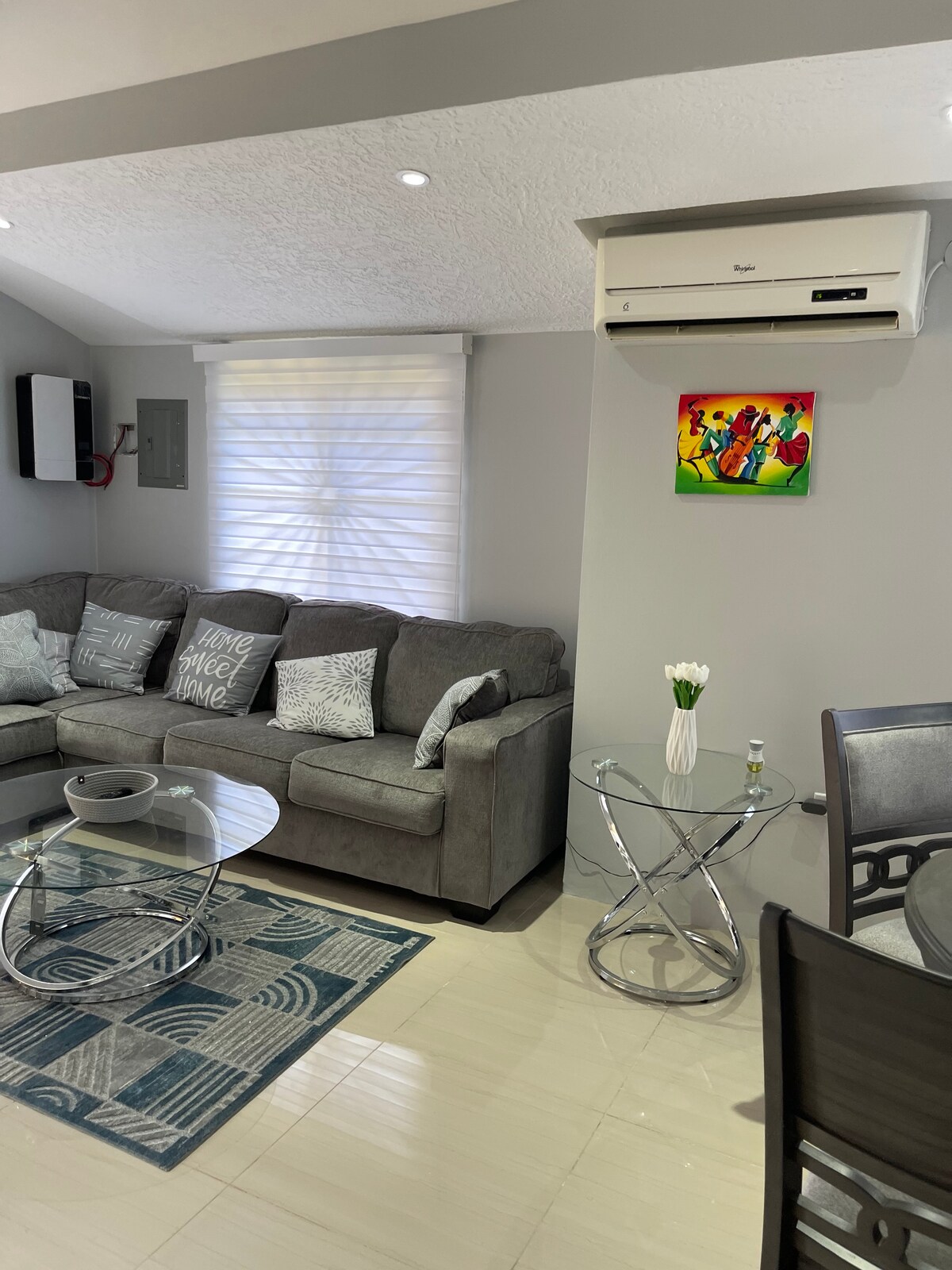 This modern eco friendly house is your perfect getaway space offering comfort, 24 hrs security and tranquility. The property is in close proximity to the highway which makes it the ultimate vacation location/home. All the best attractions on the islands north coast are minutes away (Glistening Waters, Green Grotto Caves, 876 Beach, Burwood Beach, Pueto Seco beach, Dunn's River fall's, Dolphin Cove, Chukka Adventure Park and many more). Perfect for family, friends or work travel.