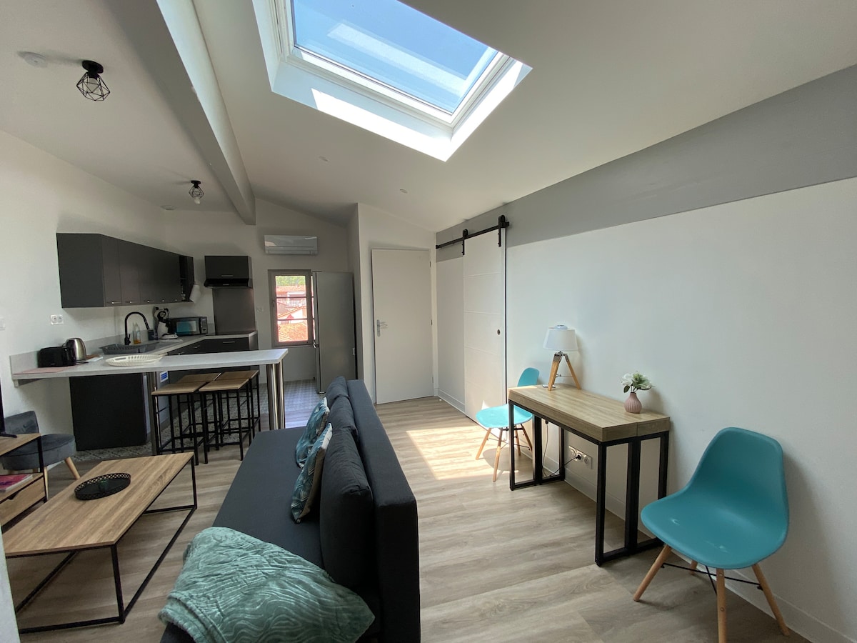 Disfruta de una casa independiente en el centro de Foix, en una zona tranquila, con un garaje en el lugar ¡Recientemente renovado y cuidadosamente decorado, este dúplex es perfecto para una estancia agradable en Foix! Ideal para 2 personas. A 5 minutos a pie de la piscina con hammam, sauna y jacuzzi, el castillo, el cine... A 8 minutos de la estación Encontrarás todas las tiendas cercanas.