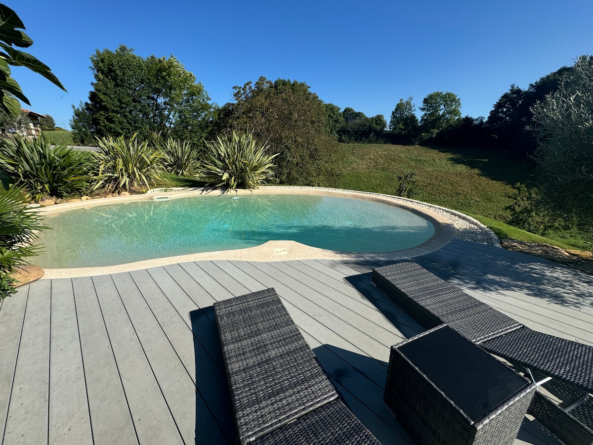 Maison avec grange & piscine vue sur les Pyrénées