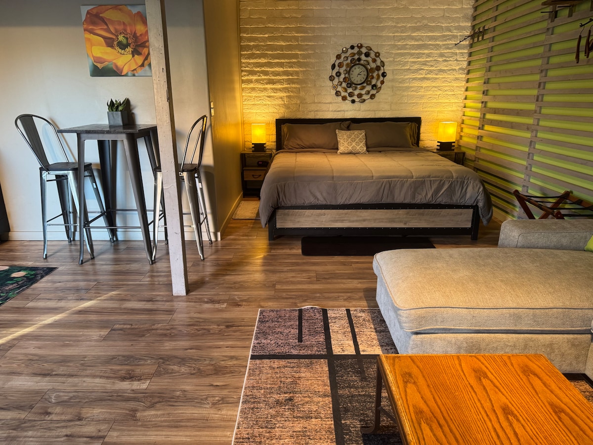 Casita lujosamente decorada en los pinos de Flagstaff: te esperan alojamientos tranquilos y acogedores mientras exploras todo lo que ofrece el norte de Arizona. Diseñada pensando en la comodidad, la Casita incluye una cama tamaño king, aire acondicionado/calefacción mini-split y ventilador de techo para garantizar que siempre te sientas bien. Hay un hermoso baño con ducha y suministros de viaje de uso común, una estación de café/té totalmente surtida, microondas y acceso al patio privado para disfrutar de tus mañanas y tardes en Flagstaff.