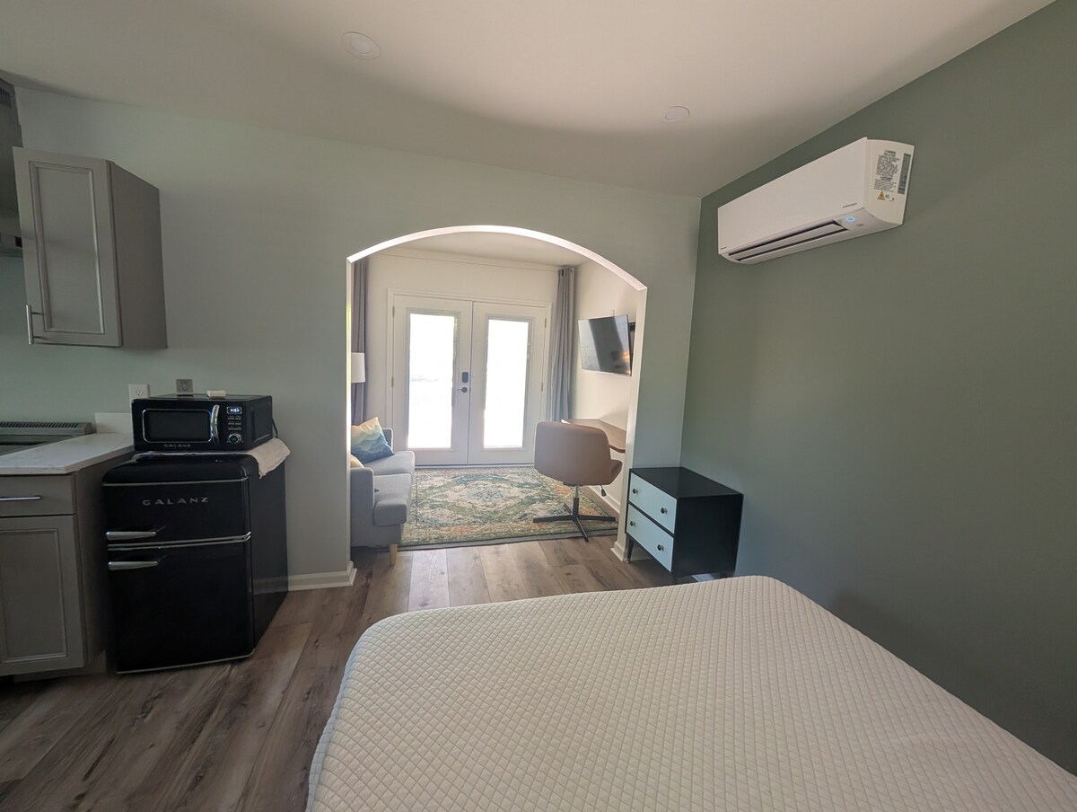 ¡El estudio es un apartamento estudio hermoso y bien diseñado ubicado en Midtown-Savannah! Situado en un barrio tranquilo a no más de 15 minutos de la mayoría de los sitios de Savannah y a 25 minutos de la isla Tybee. El estudio está adyacente a nuestra casa sin espacios compartidos y es completamente privado, incluyendo un área de patio privado y entrada dedicada. El espacio también está a poca distancia a pie de los hospitales Candler y Memorial, con tiendas de comestibles, restaurantes y cafeterías cerca.