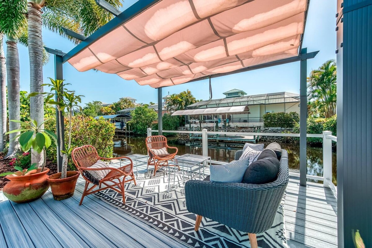 ¡Sueño frente al agua! Piscina climatizada de agua salada, sauna, gimnasio, muelle para barcos (pontón disponible para alquilar por separado), muelle de pesca y aventuras en la isla. Sumérgete en la piscina, relájate en la sauna, disfruta del café junto al fogón, toma el sol mientras lees un gran libro, todo desde un patio soleado con vistas al agua. Luego dirígete al muelle privado perfecto para pescar o alquila nuestro pontón para explorar los canales. A minutos de algunas de las playas más emblemáticas de Florida, Sanibel Island, Fort Myers Beach, tus vacaciones de ensueño te esperan.