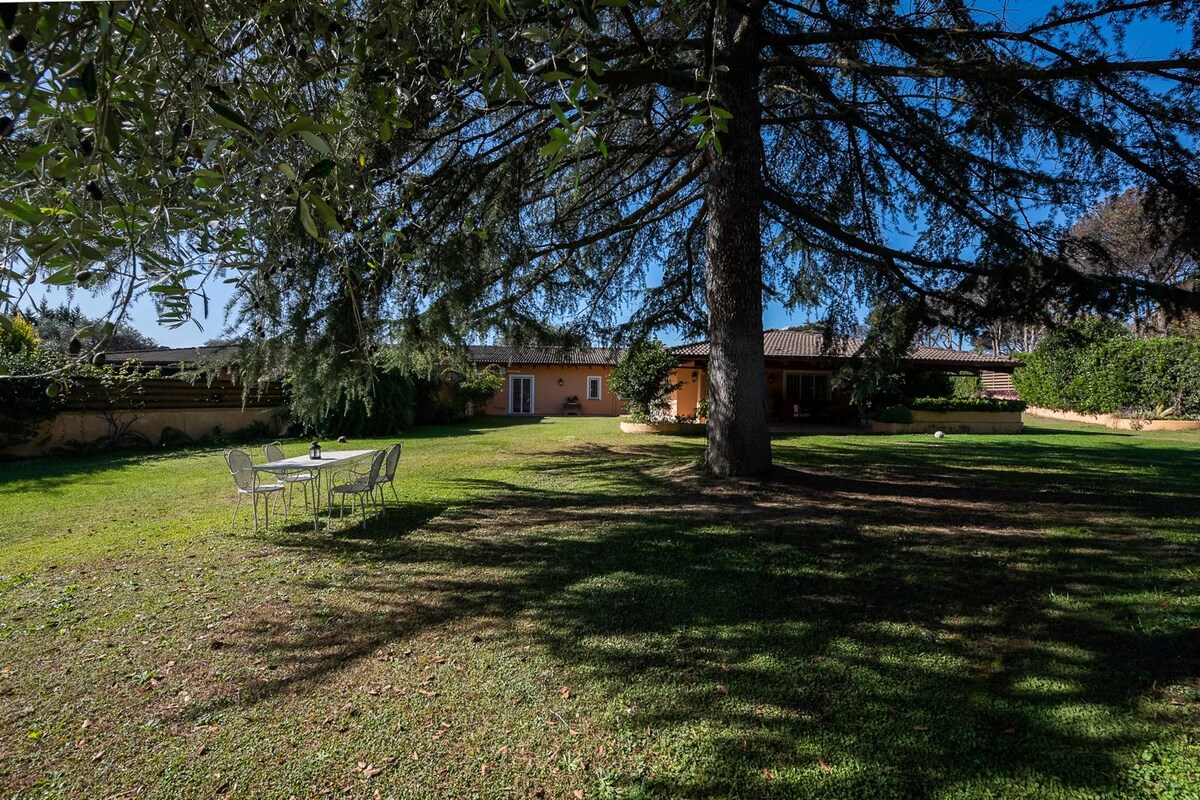 Refúgiate en el diseño de esta villa de autor de Amnios. Un oasis donde los ventanales funden interior y naturaleza. Regenérate en el SPA con Jacuzzi climatizado en el jardín de 1000m² o relájate bajo la sombra del Ginkgo Biloba. Disfruta de un aperitivo al atardecer en el patio con vistas al skyline de Roma o una sesión de cine profesional. Posición estratégica para explorar el centro, los pueblos y el mar. Refugio de élite para quienes buscan privacidad y el silencio del Agro Romano..
