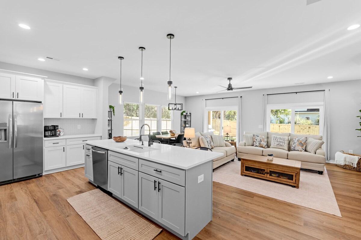 Ubicado en Main Street, en el corazón de Fountain Inn, Carolina del Sur. Esta residencia privada cuenta con una sala de estar completa, una suite principal con dos dormitorios adicionales y 2,5 baños. El comedor tiene capacidad para seis personas y la cocina completa tiene cuatro asientos en el mostrador. Fogata, parrilla y canasta de baloncesto te esperan en el patio trasero con amplio estacionamiento. ¡Lavadora y secadora completas y una gran puerta para perros al patio trasero! A poca distancia a pie de un restaurante italiano, cervecería, cafetería y heladería en Main Street. A 2 millas de la I-385.