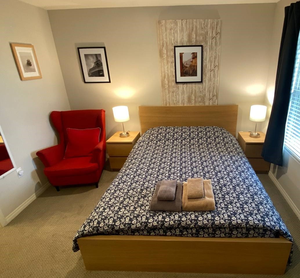 Bienvenido a tu acogedora suite de 1 dormitorio/1 baño con una cocina de tamaño completo, totalmente equipada con todos los elementos esenciales para cocinar en casa. Ubicado en un barrio seguro y tranquilo, este elegante refugio es perfecto para parejas o viajeros solitarios que buscan comodidad y conveniencia. Descargo de responsabilidad: la unidad está unida a la casa principal, pero tiene entrada privada y estacionamiento en la entrada. No hay espacios compartidos. El escritorio de oficina se está reemplazando con un sofá cama.