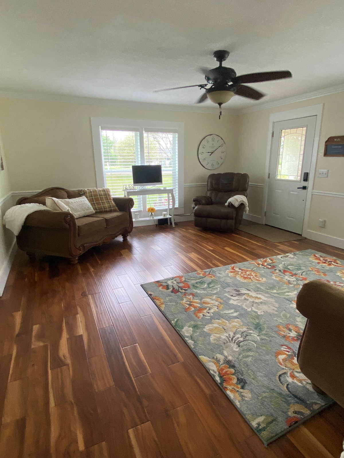 Un hermoso alojamiento modular. ¡DUERMEN CÓMODAMENTE CUATRO ADULTOS Y DOS NIÑOS! Ubicado en nuestra granja familiar de 80 acres. Un entorno rural tranquilo con algunos animales de granja. (¡POR FAVOR, NO ACARICIES A LOS ANIMALES!). Siéntate en el porche delantero o en la terraza trasera para disfrutar de una vista agradable. Es posible que veas ciervos en el prado. Hay un columpio debajo de la cochera para relajarse a la sombra. Escapada tranquila al campo. Se pueden aplicar cargos adicionales por más de cuatro adultos. (Negociaremos)