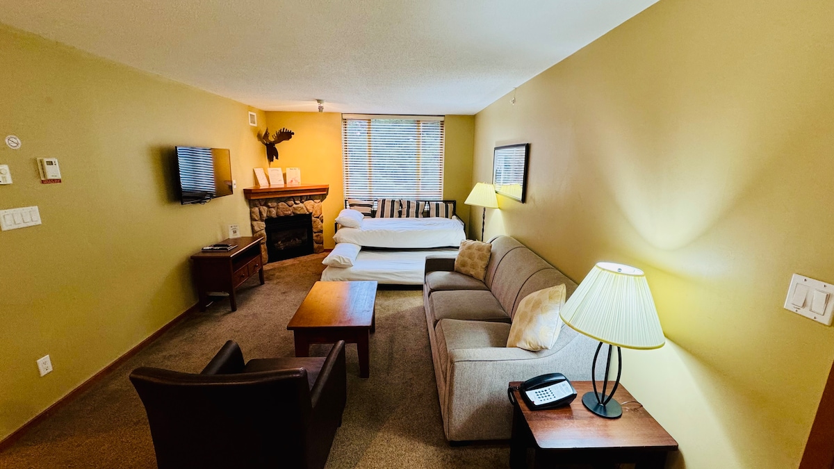 Listing is for a 2 bedroom suite at the Tantalus Lodge Hotel. Images were taken from one of our 2 bedroom suites and may not be the same suite that you will be assigned to. All of our suites will have a full kitchen, dining table, master bedroom that has 1 Queen bed and ensuite bathroom. The 2nd bedroom has 2 twin beds. There is also a pull-out sofabed in the living room.