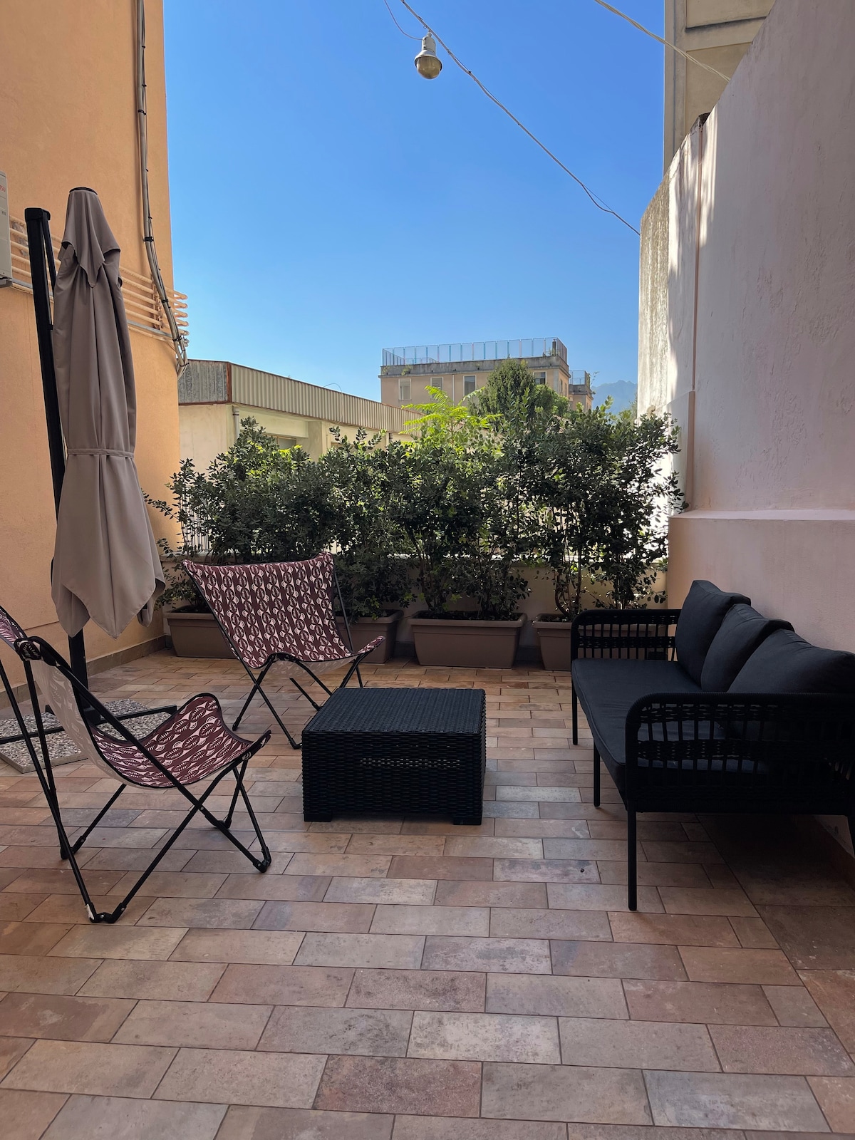 «Hermoso apartamento con estilo y terraza a solo 550 metros de la estación de tren Duomo (tren local). El apartamento se encuentra en un edificio tranquilo, fácil de llegar al centro de la ciudad y a todo el transporte (estación central de Salerno a 1,7 km). Tiendas de comestibles, bares y aparcamiento de pago justo al final de la calle. Salerno es un gran punto de partida para excursiones de un día a la costa de Amalfi. No dudes en enviarme un mensaje para cualquier otra información.
