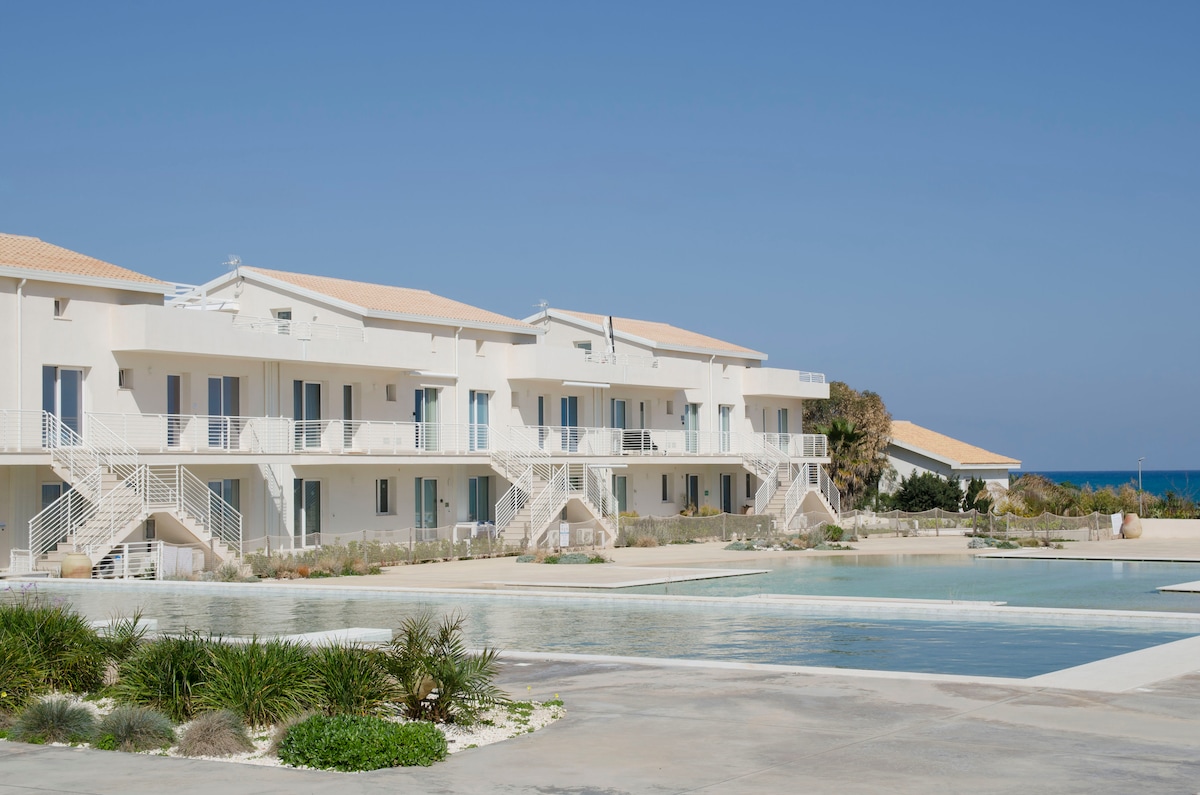 Apartamento Almaré frente al mar, con terraza y piscinas, en Marzamemi