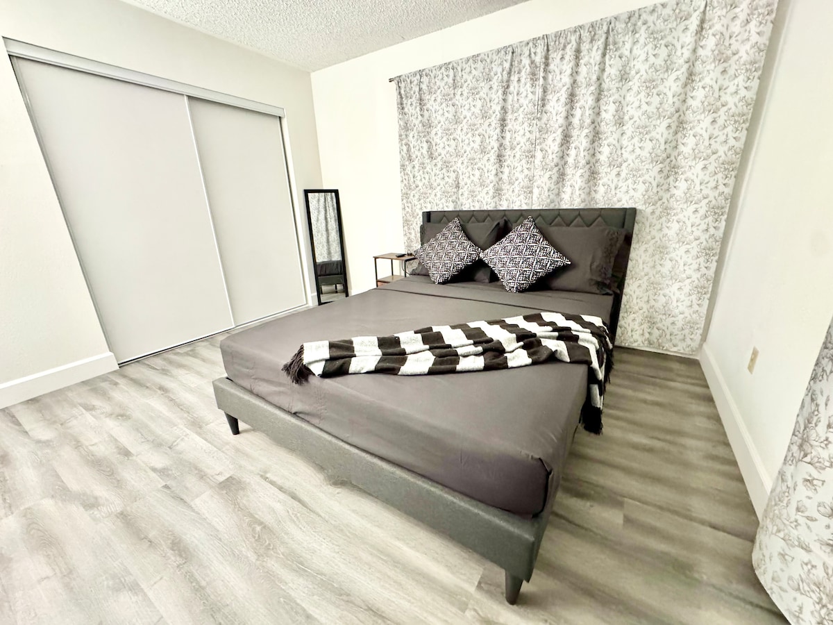 Relájate en nuestro encantador refugio. Descansa en una cómoda cama king-size, crea delicias culinarias en la cocina totalmente equipada, y disfruta de un baño moderno con lavadora/secadora. Aprovecha ventajas como estacionamiento gratuito, TV con streaming y WiFi de alta velocidad. Tu escapada perfecta te espera en esta ubicación privilegiada, donde la comodidad se encuentra con la emoción urbana. Bienvenido a un oasis de confort y estilo, diseñado para tu relajación y disfrute.