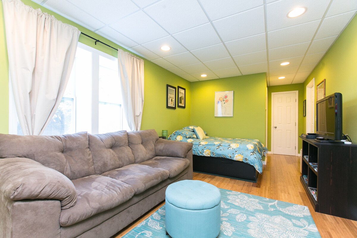 Estudio limpio y cómodo, luminoso y acogedor con magníficos pisos de bambú a solo 7 minutos del centro de la ciudad, a poca distancia de Biltmore Village, a 5 minutos de las 8 principales cervecerías y Biltmore Estate. Echa un vistazo a todas mis reseñas increíbles, este es el verdadero negocio, ¡soy un Superanfitrión por una razón! Cama de espuma viscoelástica de tamaño completo. TV/DVD con un Roku y 300 DVD y wifi. Unidad privada/separada con entrada privada y estacionamiento, vecindario tranquilo. Ideal para parejas o viajeros en solitario, puede adaptarse a una familia pequeña.
