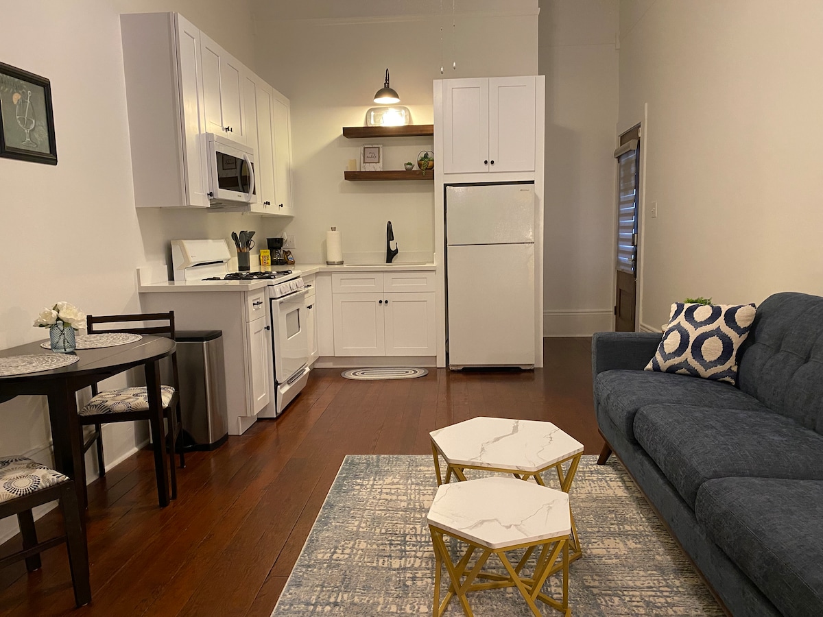 Disfruta del café de la mañana en el frondoso patio del jardín de esta vibrante casa de campo de estilo criollo ubicada en una parcela esquinera sombreada. Prepara una comida dentro de los modernos límites de la cocina o pasea por los coloridos interiores hasta que encuentres un lugar soleado en el sofá. Si prefieres dormir mientras estás de vacaciones, no dudes en cerrar todas las contraventanas de madera para formar un cómodo y oscuro capullo en el dormitorio y fingir que el resto del mundo se ha detenido mientras te relajas. Cuando estés listo para salir, aventúrate a explorar la arquitectura única de Bywater y visita los bares y lugares de reunión locales. Esta casa de huéspedes es una cabaña de estilo criollo adyacente a una escopeta tradicional (ocupada por el anfitrión) en un lote de esquina sombreado en el distrito histórico de Bywater. Originalmente construida en la década de 1800, renovada en 2007 y completamente renovada en 2017, los huéspedes disfrutarán de acceso completo y privado a esta casa de campo de más de 600 pies cuadrados, 1 dormitorio, 1 baño con una cocina totalmente equipada. Hay una cama tamaño queen en el dormitorio y un sofá modular West Elm en la sala de estar con capacidad para un adulto. Se proporcionan sábanas y almohadas adicionales. Televisor de pantalla plana con DirecTV y reproductor de DVD. Lavadora/secadora en la unidad con suministros. ¡Zumo de pomelo y satsuma recién exprimido de los árboles del patio, cuando está en temporada (octubre - febrero)! Los huéspedes pueden sentarse en el patio, con un patio privado justo fuera de la puerta de la sala de estar. Vivimos en el lugar y la puerta de nuestra casa está justo al otro lado del patio desde la sala de estar o en la terraza junto a la puerta de entrada. Si necesitas algo, estaremos encantados de estar a tu servicio. De lo contrario, te dejaremos disfrutar tranquilamente del espacio y de tus viajes. La casa de huéspedes está situada en el distrito histórico de Bywater, un barrio criollo conocido principalmente por su arquitectura de colores brillantes y sus creativos miembros de la comunidad. El barrio cuenta con fácil acceso a restaurantes y entretenimiento, y una serie de puntos de interés están cerca, incluyendo uno de los mejores brunch de la ciudad, una nano-cervecería y un bar de vinos con jazz en vivo en el patio varias veces al día. El sendero de Crescent Park a lo largo del río está a dos manzanas y es una bonita puerta de entrada al Barrio Francés. El sendero Crescent Park a lo largo del Mississippi Riverfront está a dos manzanas de la casa y ofrece fácil acceso en bicicleta/peatón/silla de ruedas al mercado francés (a unas 1,5 millas) junto con el resto del barrio francés más allá (Jackson Square está a unas 2 millas de la casa). Hay varias rutas de autobús a 2-4 manzanas de la casa, incluida la ruta de autobús 5 a dos manzanas que te lleva al barrio. La ruta del tranvía Rampart-St. Claude está aproximadamente a 1,6 millas de distancia en la intersección de St. Claude y Elysian Fields. Varias empresas locales ofrecen alquiler de scooters y bicicletas a un par de millas de la casa, y una estación de bicicletas compartidas (Blue Bikes NOLA) se encuentra a la vuelta de la esquina. Uber/Lyft/viajes compartidos están disponibles, por lo general en 5 minutos o menos en la mayoría de las horas del día, y cuestan alrededor de 7-12 USD hasta el Barrio Francés/CBD (o Distrito Central de Negocios como llamamos en Nueva Orleans a nuestro centro), dependiendo del tráfico, la hora del día, la ubicación exacta de entrega, etc. Si conduces tu propio vehículo, aplicaciones como «Spothero» te ayudarán a encontrar y comparar opciones de estacionamientos y espacios privados o de pago en tu destino. El aparcamiento en la calle suele ser bastante fácil de encontrar y no se requiere permiso ni existen restricciones de tiempo. J&J 's Sports Bar está al otro lado de la calle. Si bien puede ser genial para ver un partido cerca o para tomar una copa antes de irte a la cama, dependiendo del día, también puede haber ruido de conversación hasta altas horas de la madrugada. Se proporciona una máquina de ruido blanco en el dormitorio, en caso de dormir sensible. Número de licencia a corto plazo del Ayuntamiento de Nueva Orleans/Tipo/Caducidad: 17STR-16097/STR accesorio/16 de agosto de 2018