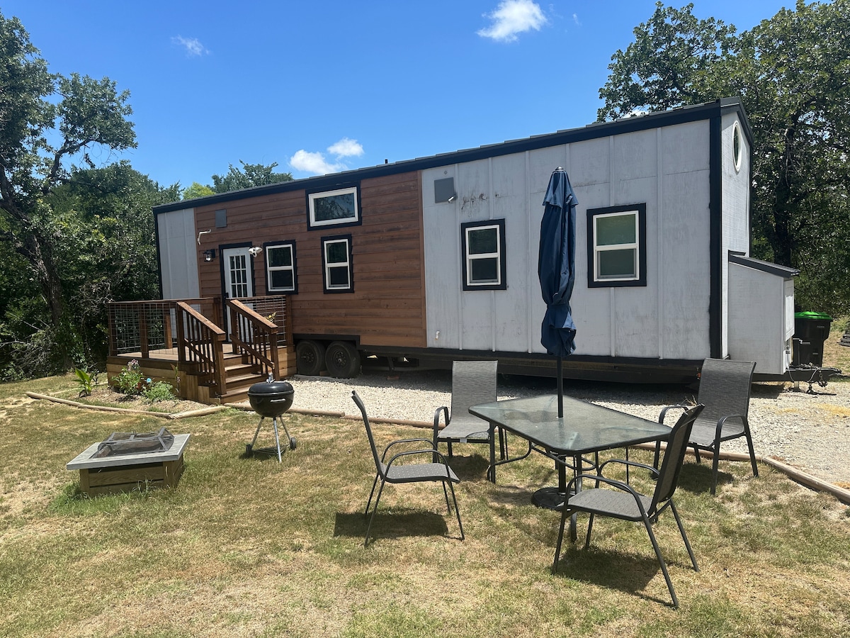 Come enjoy your own oasis of tranquility. A Tiny house on Lake Lewisville; located in Little Elm. A HIDDEN gem close to Frisco and Denton Texas. Enjoy your own beach. Watch the sunrise and the sunset. Creative date night. Anniversary celebration. Go kayaking,fishing, boating. Read a book; go hiking. It's your own staycation. Enjoy the fire pit with friends. Bring your boat. Boat ramp is close. Camping allowed on the beach. We welcome children and pets. Its ok to bring mom and dad.