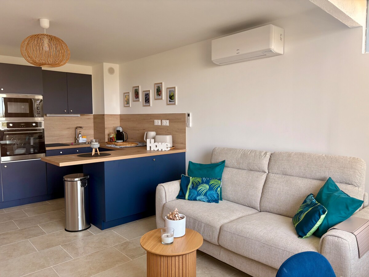 T2 cocooning con aire acondicionado, WIFI, a 2 pasos de la playa