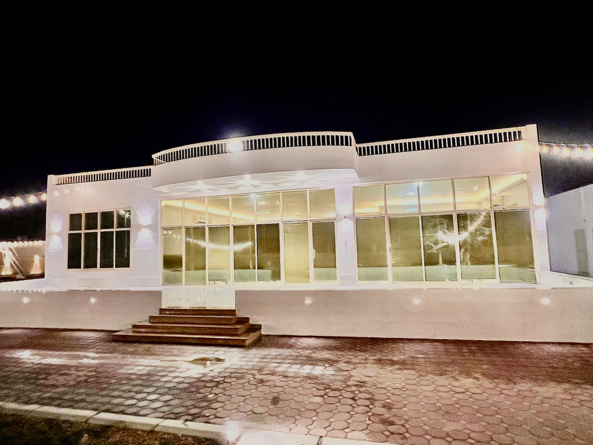 Disfruta de la paz y la relajación con tu familia o amigos. Te damos la bienvenida a nuestro maravilloso alojamiento cerca de Masafi 🏡 que consta de: • Amplia y espaciosa sala de estar con hermosos muebles, TV, lavabos para invitados y baño. Se puede convertir fácilmente en un espacio para dormir utilizando colchones y accesorios para dormir. • Un dormitorio principal con baño privado y dos camas. Se pueden agregar colchones y equipos para dormir adicionales según sea necesario, elegantemente amueblados para proporcionar la máxima comodidad y privacidad. • Hermoso espacio al aire libre, con asientos cubiertos con sombrillas, pavimentados y herramientas para barbacoa con madera, ideal para reuniones relajantes.