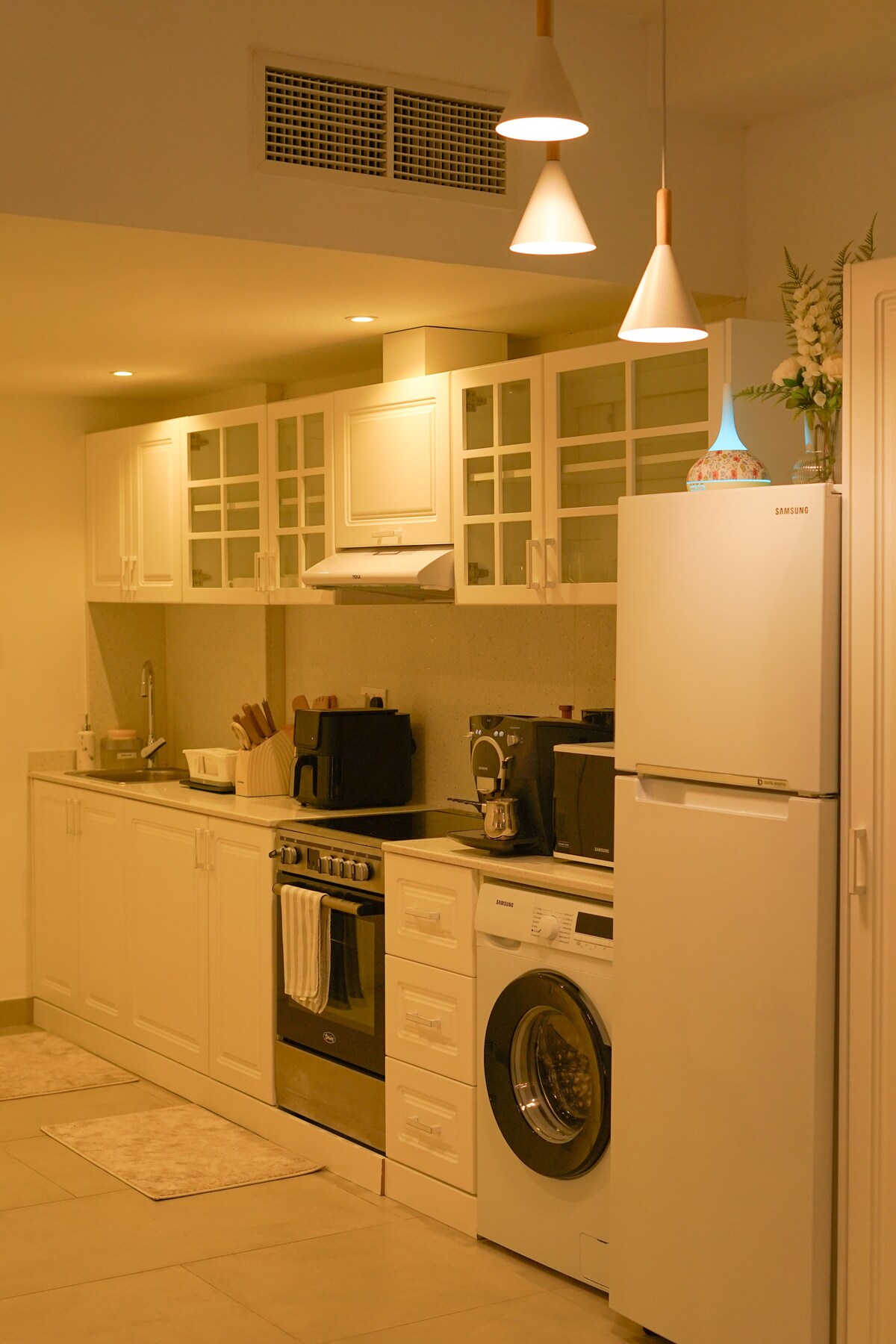 • Refugio moderno de 2 habitaciones en Bloomfields, Fujairah: diseño elegante y comodidad estilo complejo turístico • Amplia sala de estar + televisor inteligente • Dormitorio con cama tamaño king y baño completo • Cocina y comedor totalmente equipados. • Balcón privado, wifi de alta velocidad • Acceso a la piscina, aire acondicionado, sábanas limpias incluidas • Ideal para estadías de negocios o de placer Normas de la casa: • No se permiten mascotas, no se permite fumar, ni se permiten fiestas ni grabaciones • Check-in 3:00 p. m. | Check-out 12:00 p. m. • Estancia mínima: 3 noches
