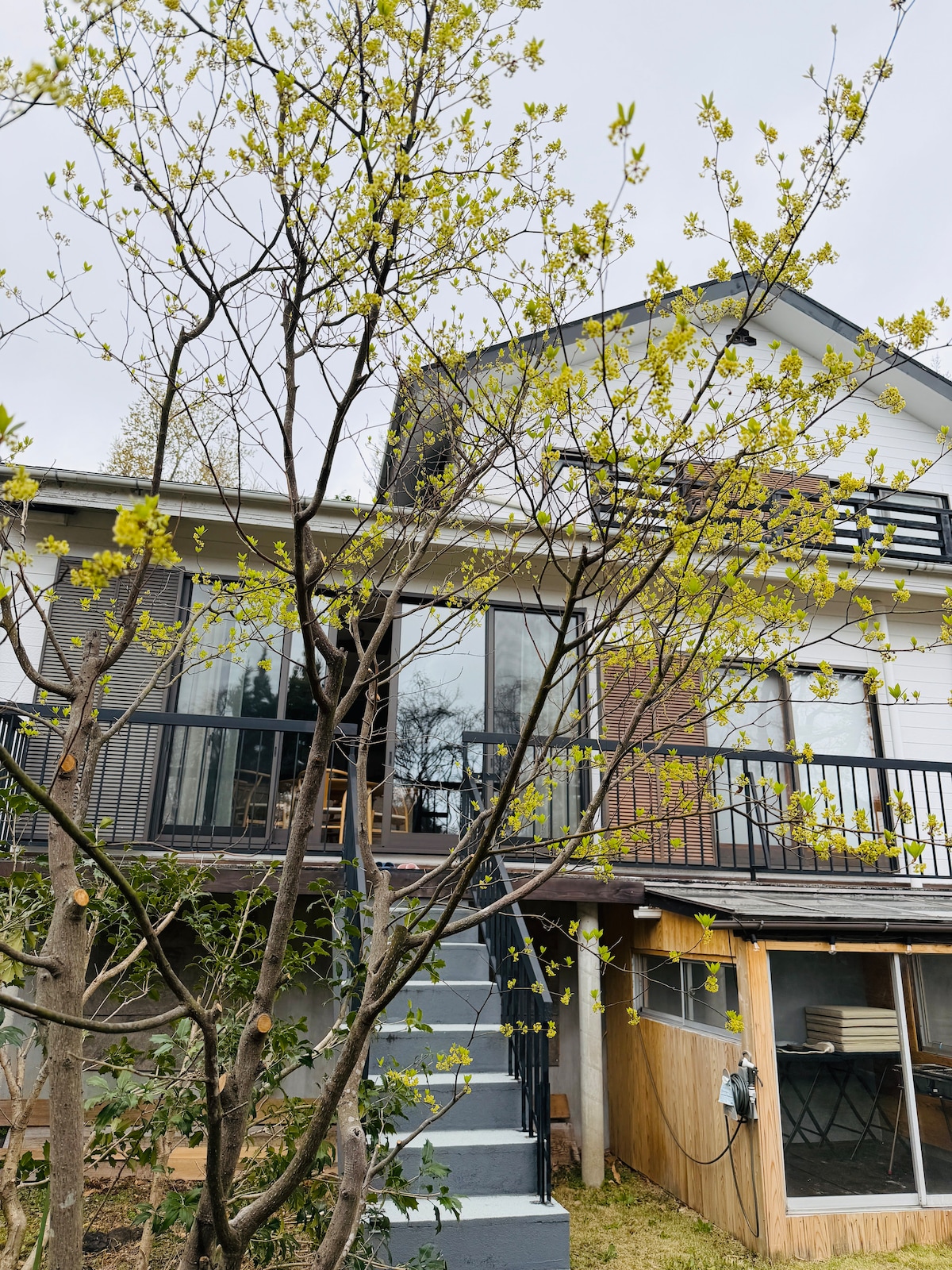 * Está a 3 km de la estación de Kawaguchiko.Recomiendo venir en auto. * Solo se puede utilizar una parrilla de gas para barbacoas en la cubierta de madera. * Los fuegos artificiales están prohibidos. * Las bicicletas se pueden utilizar de forma gratuita desde el check-in hasta el check-out.No se puede usar después de la salida. * La estufa de leña se puede utilizar por un cargo adicional. Esta villa es una villa donde puedes relajarte en un espacio relajante y relajante mientras miras al monte Fuji. El edificio W, un exterior blanco, es una villa basada en el concepto de "moderno y clásico". La cocina de la isla está adornada con gafas venecianas con luces colgantes.Siéntate en un espacio elegante y artístico y disfruta de un momento irremplazable con Fuji.