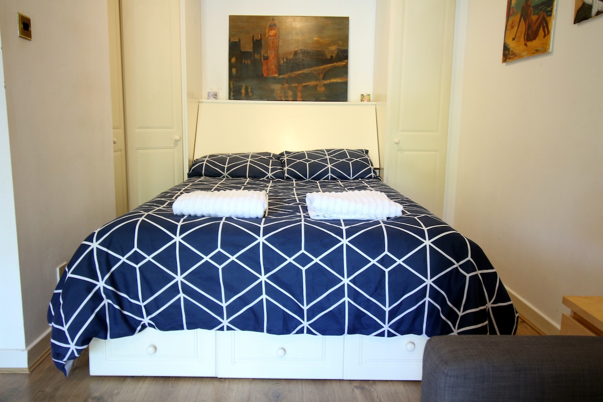 Apartamento tipo estudio en New Kings Road . Recién reformado . Parsons Green Ideal para un solo profesional. Para reservaciones de más de 2 semanas, el limpiador se proporciona de forma gratuita . Departamento muy luminoso en el primer piso. Colores neutros, piso de madera, cocina moderna con placa de inducción , campana extractora telescópica, horno con parrilla , microondas , lavadora con secadora. Tapa de trabajo de cuarzo. Vi -Spring cama doble. Vispring es un lujoso fabricante de colchones británicos. Armario de vidrio italiano. ¡Internet de fibra rápida!