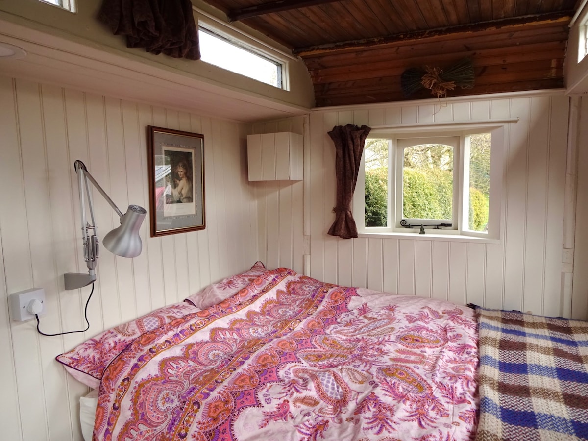 Romántico carromato de estilo gitano (c. 1920) en un idílico jardín de casa rural con maravillosos pájaros cantando y vistas a una iglesia medieval. Recientemente se renovó con electricidad, cocina básica y tiene uso de un baño privado adjunto a la casa de campo, así como una parte del jardín con asientos exteriores y un cuenco de fuego. El vagón solo está disponible en los meses de verano, desde Semana Santa hasta mediados de septiembre.