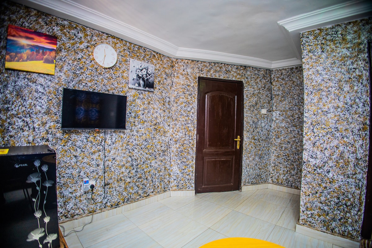 Enjoy a comfortable stay in this private ensuite room on the 3rd floor of a gated property in Ofankor Barrier, Accra. There are no shared living spaces—your bedroom and bathroom is fully private. The room features air-conditioning, fast Wi-Fi, TV, a standing fan, fridge, and a hot shower for your comfort. The area is safe and guest-friendly, close to the Ofankor Police Station, public transport, shopping, and main roads, and about 30 minutes from the airport. Ideal for business or leisure stays