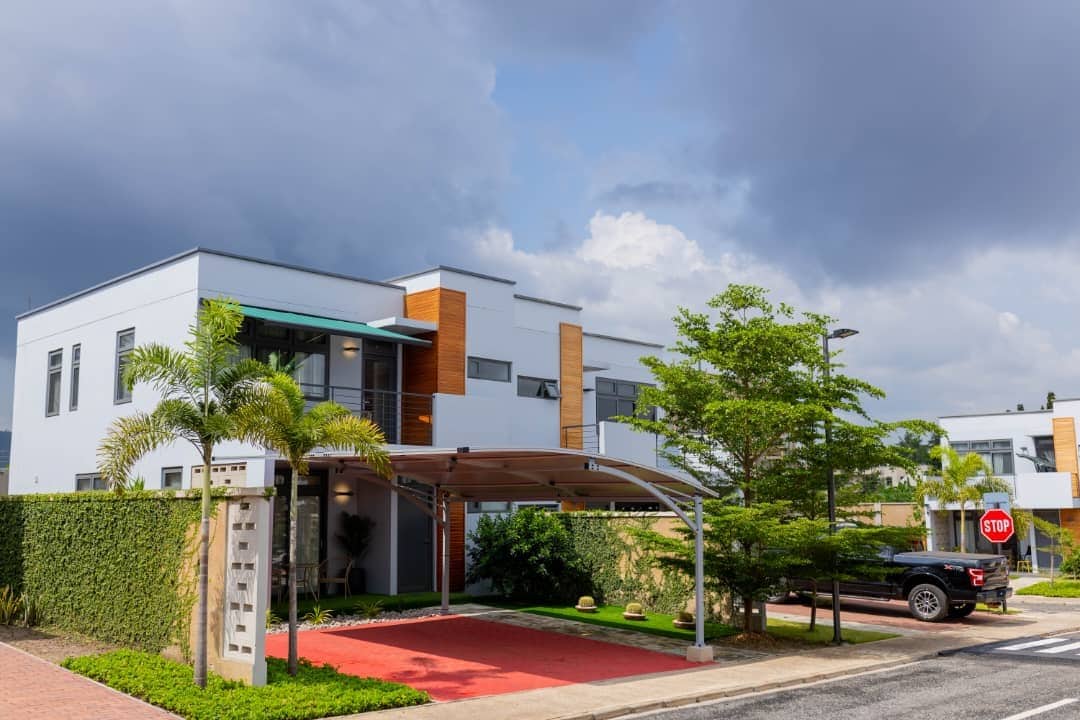 Disfruta de una estancia tranquila en esta casa de 2 dormitorios bellamente diseñada, rodeada de exuberantes jardines verdes e impresionantes vistas de la montaña Aburi. Ubicado en una zona segura con seguridad 24/7, cuenta con una cocina totalmente equipada, internet de alta velocidad, una piscina refrescante y un parque infantil. La propiedad se encuentra muy cerca de la montaña Aburi y de la ruta de senderismo, ideal para los amantes de la naturaleza. A solo 45 minutos del Aeropuerto Internacional de Kotoka, está a pocos pasos de un centro comercial con servicios esenciales.