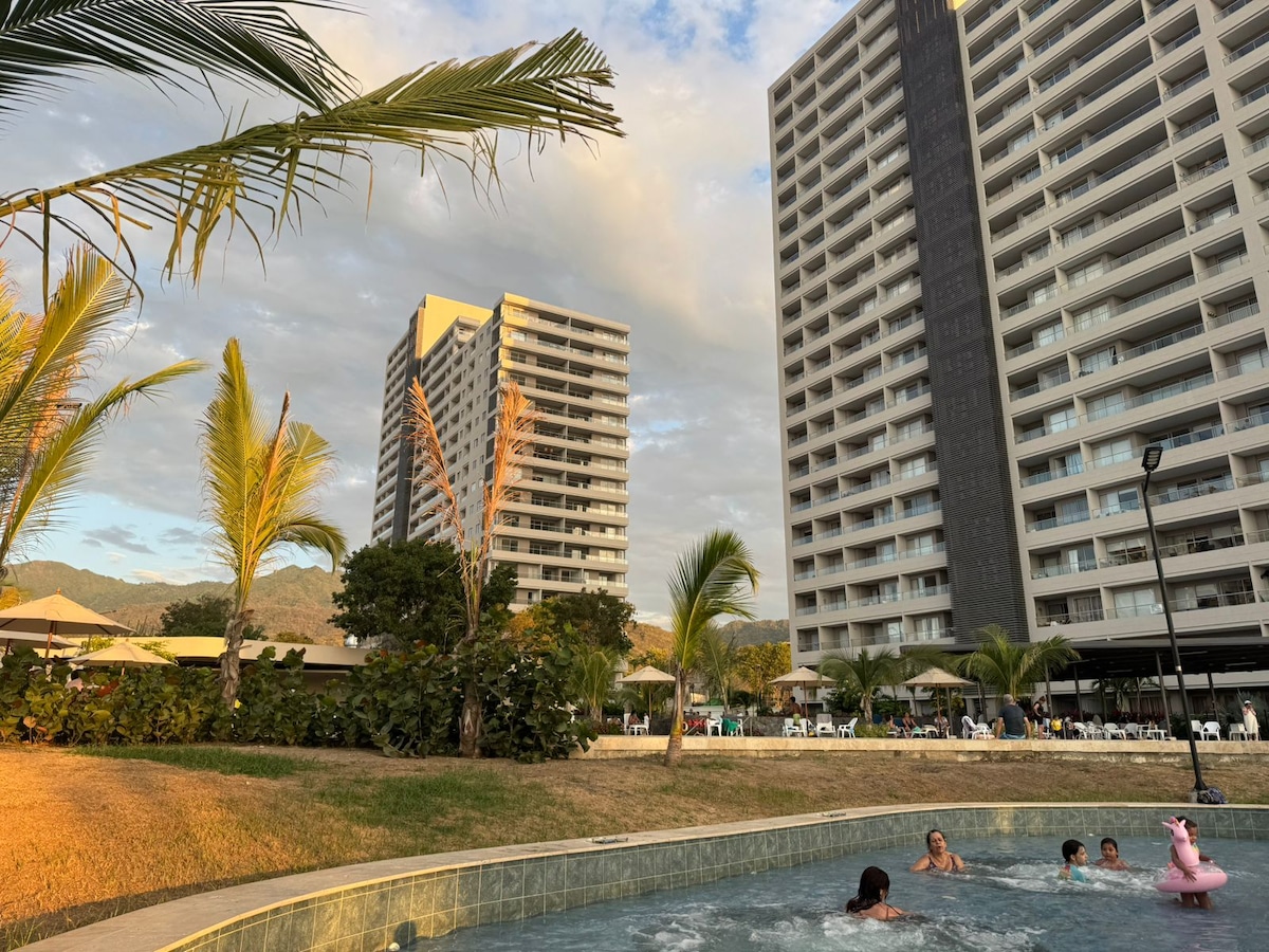 Hermoso y acogedor apartaestudio con salida directa al mar, acceso a varias piscinas y jacuzzis, espectaculares vistas y acomodación 5 estrellas. Ubicación ideal para quienes buscan descanso y tranquilidad sin perder la cercanía a tiendas y restaurantes a solo 20 minutos del Centro Historico. Area 53 m2 Balcón amplio con vista al mar y al rio BBQ Cama King size, 2 camas nido y 1 sofa cama doble AA y abanicos TV y WIFI Agua Caliente Estacionamiento Privado y cubierto Cocina totalmente equipada