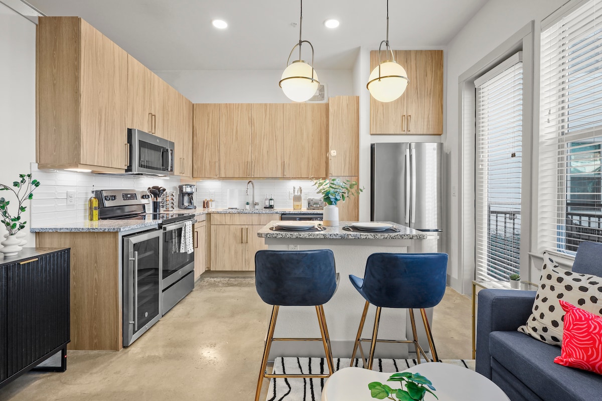 Entra en un espacio luminoso y abierto con muebles elegantes y abundante luz natural. La cocina totalmente equipada cuenta con electrodomésticos de acero inoxidable, encimeras de granito y todo lo que necesitas para preparar una comida o disfrutar de un café rápido antes de explorar. Cada dormitorio es un refugio acogedor con ropa de cama lujosa, amplio espacio en el armario y su propio baño privado, perfecto para relajarse o ponerse al día con el trabajo. El wifi de alta velocidad te mantiene conectado, mientras que el televisor inteligente ofrece entretenimiento en el tiempo de inactividad.
