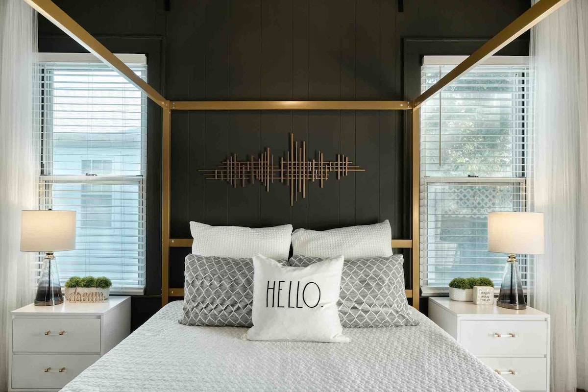 Classic Black & White theme w/modern amenities. *HOT TUB, FIRE PIT, TIKI BAR - 2 SHORT BLOCKS TO BEACH! *NO PETS* — Sleeps 5 *Private HOT TUB w/oversize Umbrella *Two Bedroom - King beds in both *Queen Sofa Bed *1.5 Bath *Coffee Bar - Nespresso & Pods, Drip Coffee Pot *Washer & Dryer-downstairs *Beach Gear Provided (umbrella, chairs, cooler, wagon) *Beach Towels
