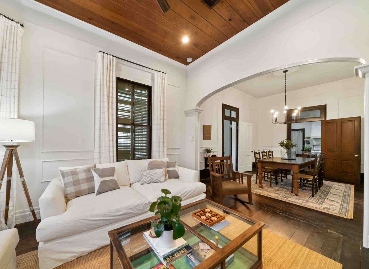 Esta casa victoriana de 1898 fue totalmente restaurada por Save 1900. Los anfitriones de la casa también son anfitriones del espectáculo de bricolaje "Restaurando Galveston". Aunque es un antiguo hogar, ¡esta casa tiene todas las comodidades modernas que podrías desear! Ubicado en el distrito histórico de Silk Stocking, a solo 5 cuadras de la playa, a 1 cuadra de la ruta del desfile de Mardi Gras y cerca de todo lo que Galveston tiene para ofrecer. Todos los dormitorios tienen camas tamaño queen y hay un dormitorio principal con baño privado. Esta es una vida cómoda y elegante cerca de la playa.