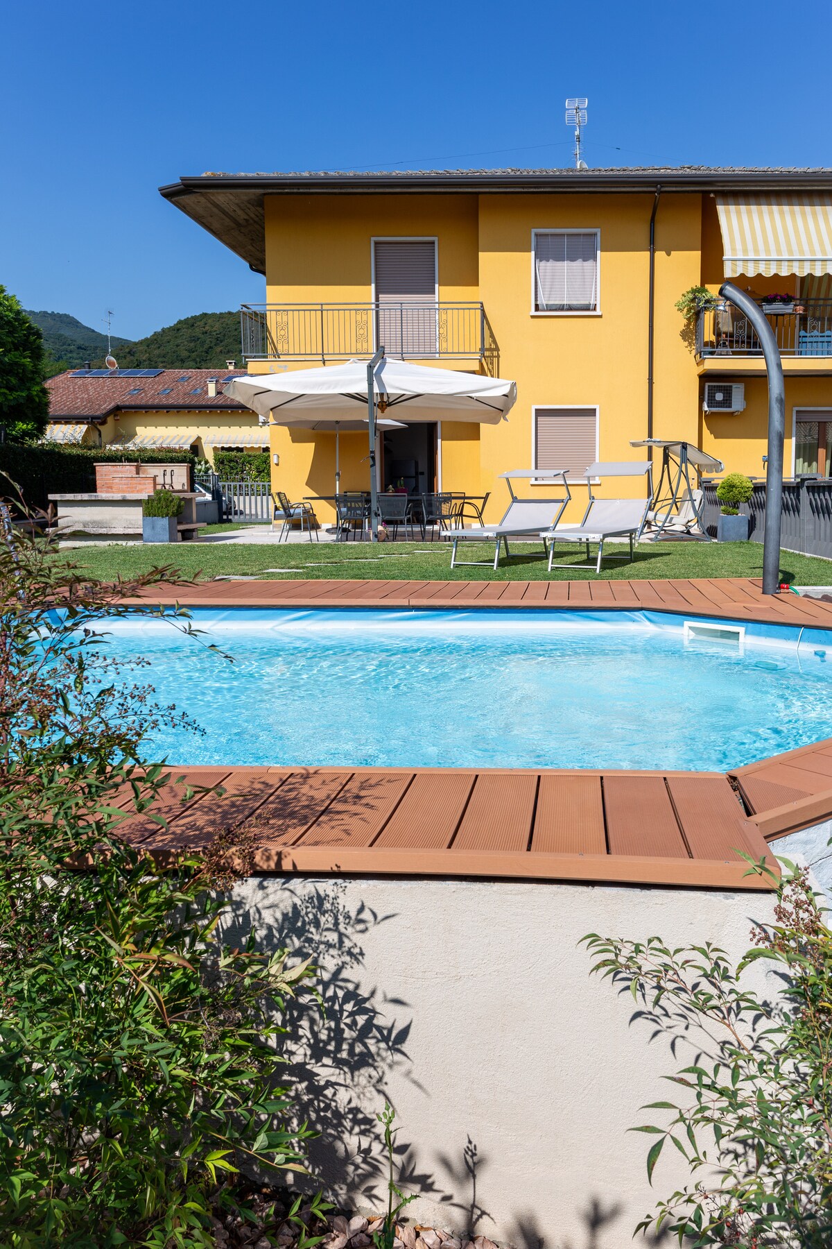 Appartamento di 54mq con accesso diretto a piscina e giardino, con vista panoramica sul Lago di Garda.Posizione superlativa e riservata. Utilizzo del giardino e della piscina, riservatezza e relax negli ampi spazi esterni. Costruzione moderna del 2015. Entrata privata e autonoma, ampio parcheggio. Pulizia rigorosa. Totale privacy. Ammessi animali di piccola taglia.
