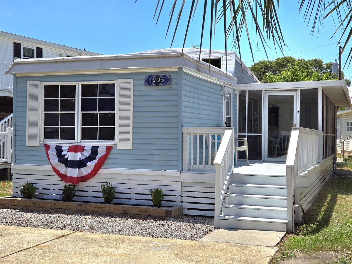 A beach haven located in gated, beach front golf cart community. Wake up to the ocean breeze, salt air, and warm sunshine. Located just minutes from the ocean. Modern beautifully furnished with all the conveniences of home. 2 bed 2 bathrooms and fully equipped kitchen. Fenced in backyard. Oceanside Village features a brand-new kids' spray park, indoor and outdoor pools, tennis courts, fitness center, dog park, lakes for fishing, children's playground, softball field, basketball court and more.
