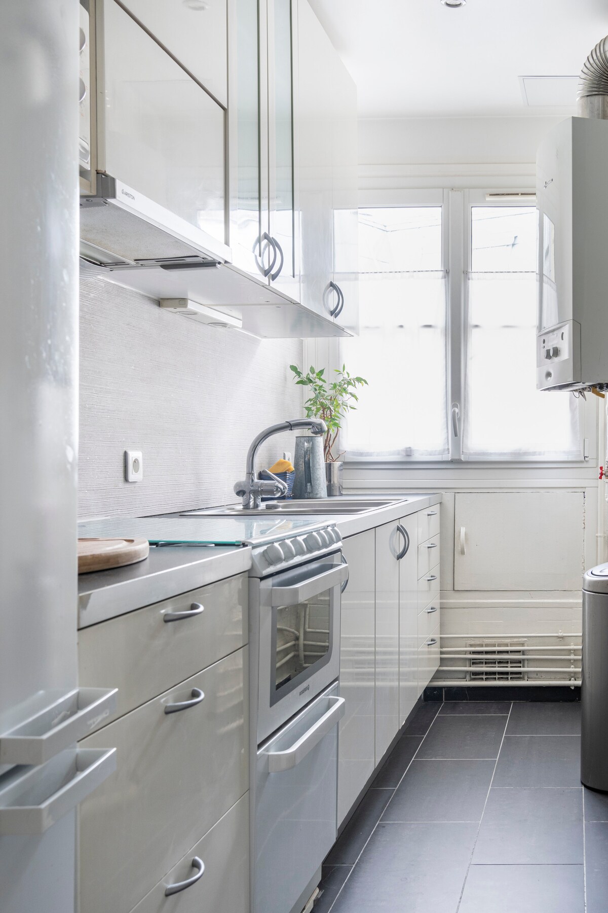 Es un apartamento muy soleado y hermoso. Flor de madera, recientemente renovada. Muchas tiendas excelentes a la vuelta de la esquina, el romántico Canal Saint Martin, a 2 minutos a pie. Idealmente ubicado en el centro de París. Alójate para 4 personas. Cocina y baño grandes.