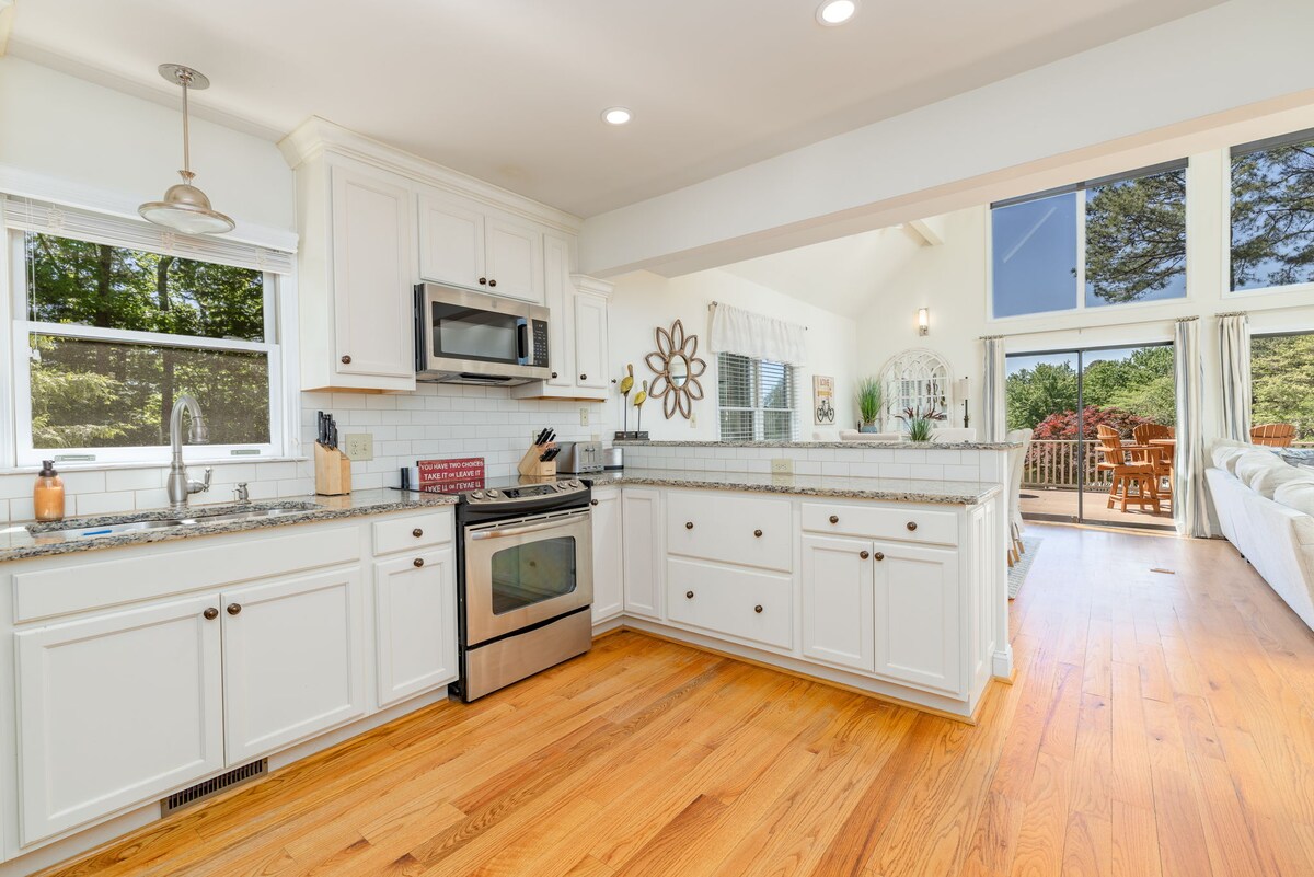 ¡Pintoresca y acogedora casa del lago enclavada en 1,4 acres con una fabulosa vista al lago principal! Plano de planta abierto y luminoso de un nivel con sala de estar, comedor, cocina con encimeras de granito y barra para comer, 2 dormitorios/1 baño. Impresionante solarium amueblado para disfrutar del amanecer sobre el lago principal con tu café por la mañana. Camina por el hermoso paisaje hasta una bonita playa de arena y un cobertizo para botes. ¡Absolutamente perfecta para hacer kayak, nadar y navegar en tu próxima casa de vacaciones de verano!