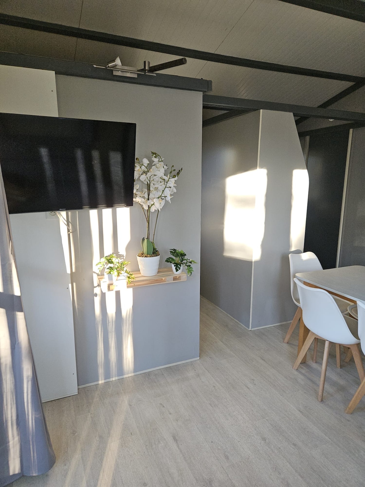 cabaña para no fumadores, con aire acondicionado( frío y calor) bien equipada a 2 minutos de la estación de tren(venimos a buscarlo en automóvil si es necesario), habitación con 2 camas individuales, sala de estar abierta a una hermosa terraza espaciosa en plena naturaleza, a pocos pasos del centro del pueblo y centros comerciales. 25 km de la playa(Fréjus o st Maxime gargantas del Verdon 80 km. equipamiento: lavadora, tv, wifi, heladera, hervidor de agua, microondas, tostadora, muebles de jardín, plancha, placa de inducción...