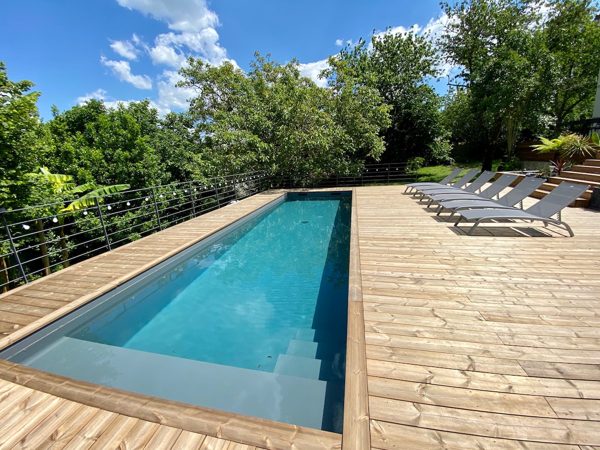 Casa de piedra con piscina privada y jardín