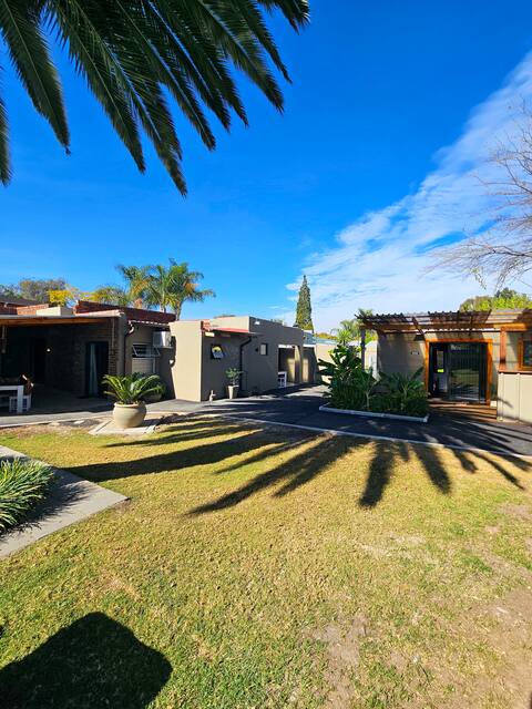 Estamos perfectamente situados en una hermosa propiedad pequeña de 4 acres con total seguridad (área en auge, vallas eléctricas y alarmas), hermoso jardín, con una variedad de aves y gansos residentes. La unidad es muy tranquila, privada, con espacio de estacionamiento seguro y ha sido recientemente renovada con un ambiente moderno pero cálido. Tienes acceso a mucho espacio en el jardín de la propiedad para dar un corto paseo. Ofrecemos limpieza gratuita cada 2 semanas para estadías largas de 2 semanas o más, fibra wifi ininterrumpida, Netflix y YouTube.