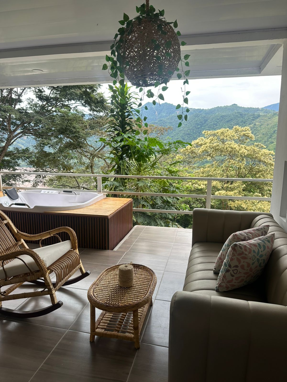 No encontrarás mejor lugar para disfrutar de la tranquilidad y armonía que brinda la naturaleza. Tu reserva incluye: Desayuno gratuito Parqueadero WiFi privado ideal para trabajo a distancia Acceso a malla catamarán, zona de fogata y BBQ Ropa de Cama y Dubet Cocineta privada Área Pet Friendly MiniBar Calentador Sofa cama en altillo Areas de caminata y descanso Opcionales: Servicio de restaurante Alquiler de bicicletas de montaña Servicio guía turística y senderismo Servicio cabalgata
